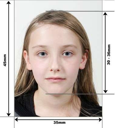 2 recent passport-size colour photographs taken against a white background, size (35 mm x 45 mm with 80% face close up)