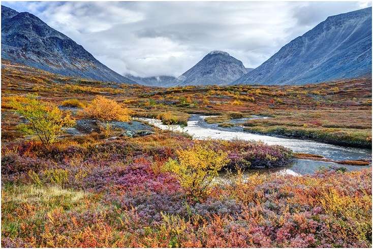 The tundra is a unique biome that only exists in or near the Arctic Circle. Here, temperatures are so cold that trees can't grow, and only moss, shrubs, and certain types of grasses can get through the winter. In most places, the tundra is synonymous with permafrost—meaning the ground is permanently frozen. In areas where the top layer of ground does melt during summer, marshes and streams will form over the land, leading to beautiful patches of colorful icy water.