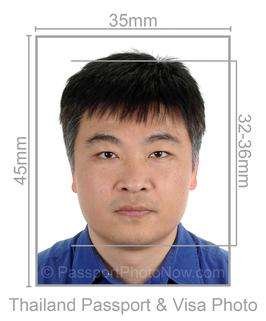 Size: 35mm by 45mm for passport. 40mm by 60mm for visa.