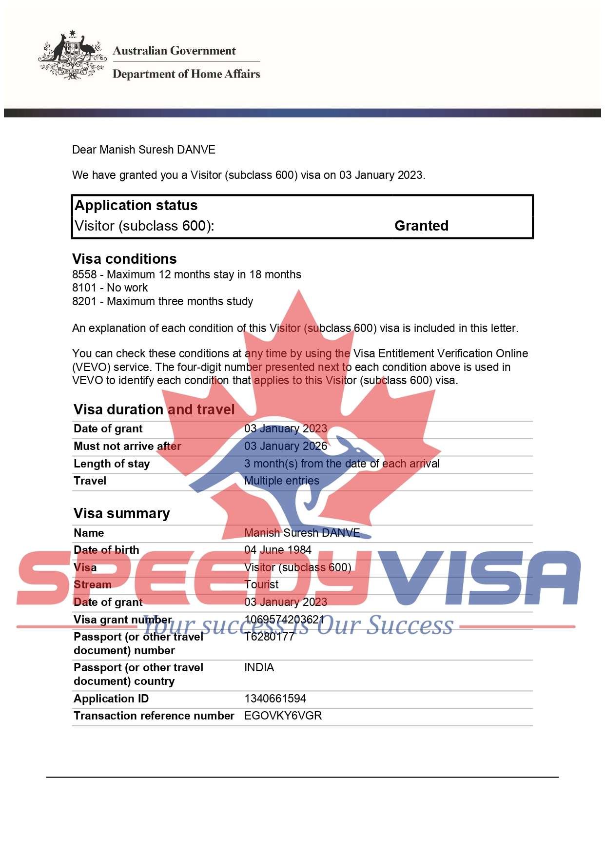 Speedyvisa is brand name of OMEGAVISA CONSULTANTS (OPC) PVT. LTD