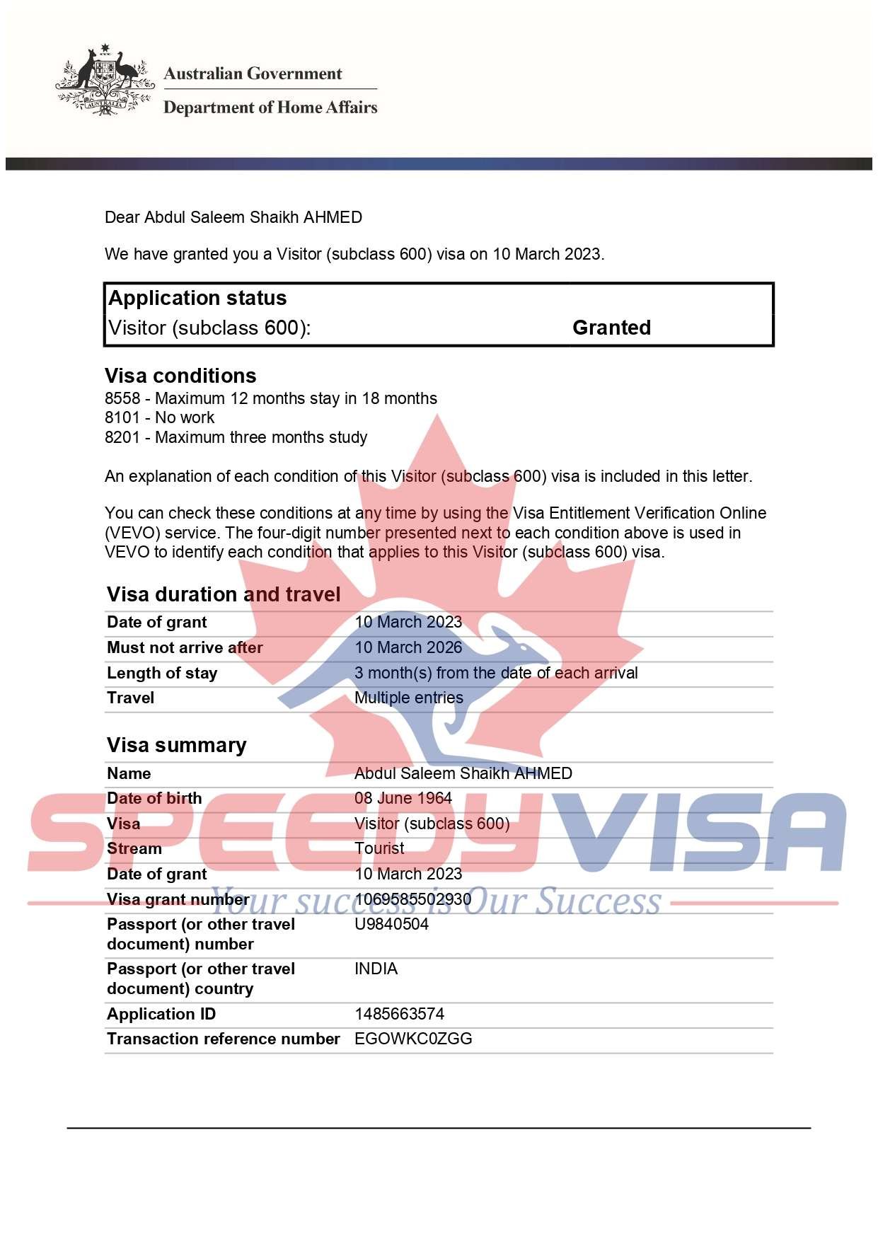 Trade Name: Speedy Visa