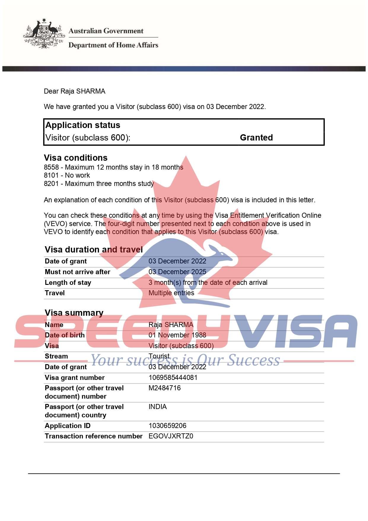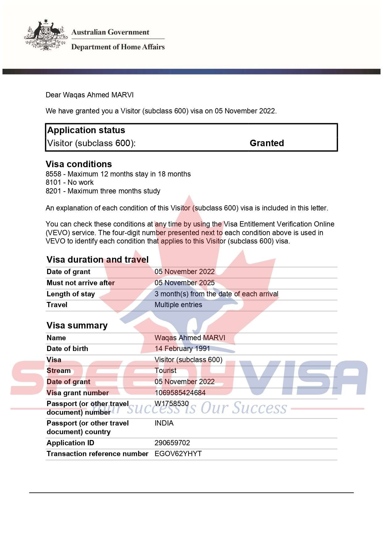 Speedyvisa is brand name of OMEGAVISA CONSULTANTS (OPC) PVT. LTD