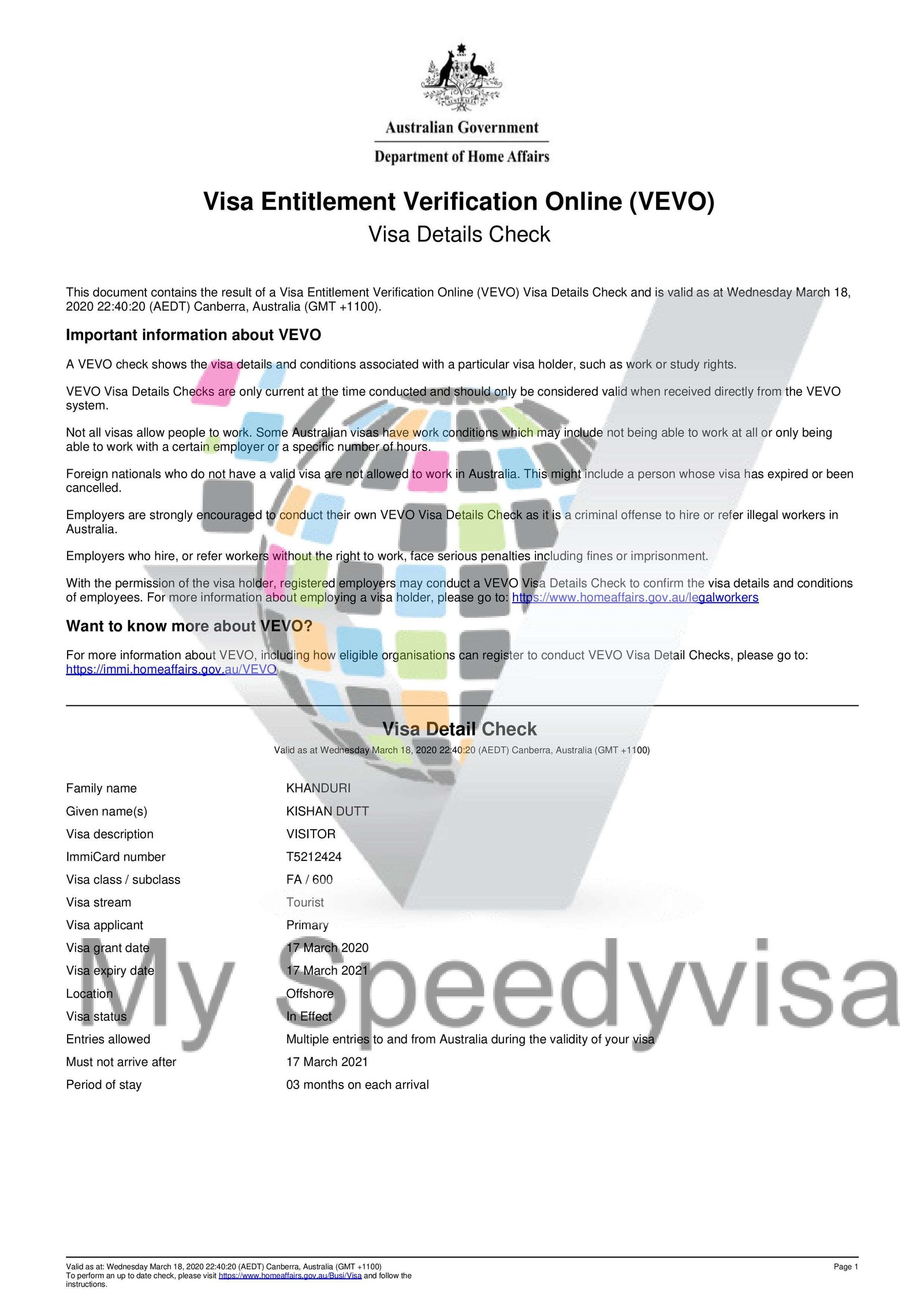 Trade Name: Speedy Visa
