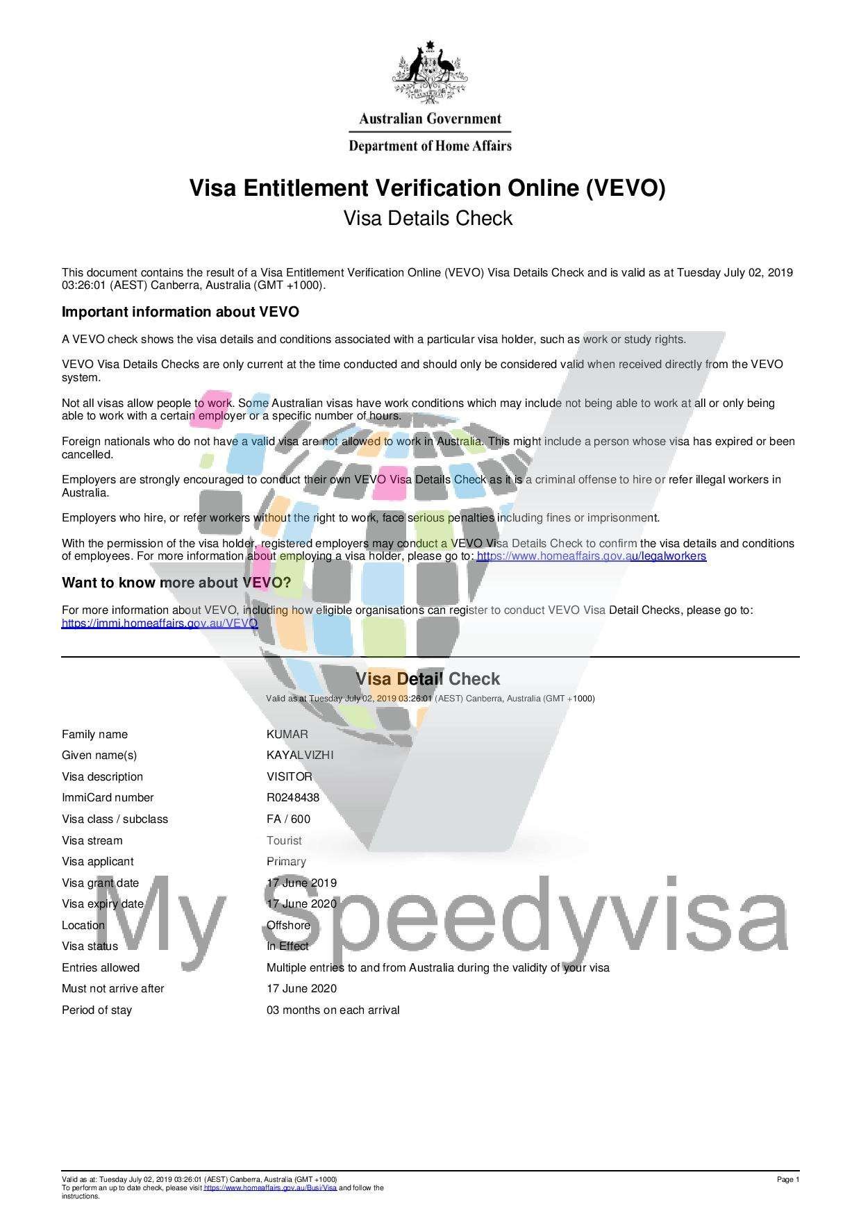 Trade Name: Speedy Visa
